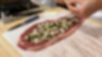 Using butcher twine, tie the braciola tightly shut so that it can't unwrap and the ends can't open. Set aside and repeat the above steps with the second piece of meat so that you end up with two rolls.